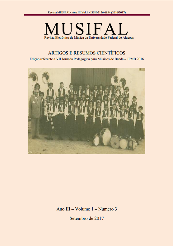 v. 1 n. 5 (2021)Edição comemorativa ao III Encontro Alagoano de Saxofonistas (EAS), realizado no ano de 2020 (dois mil e vinte) pela Universidade Federal de Alagoas.
